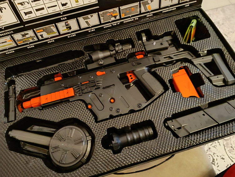 باتری ،صداخفه کن ،دوعدد خشاب مختلف ، دسته ،دوربین زوم دار ، رد دات