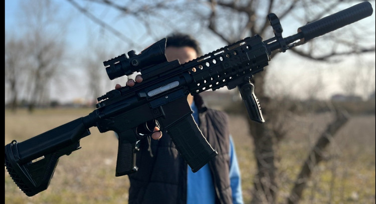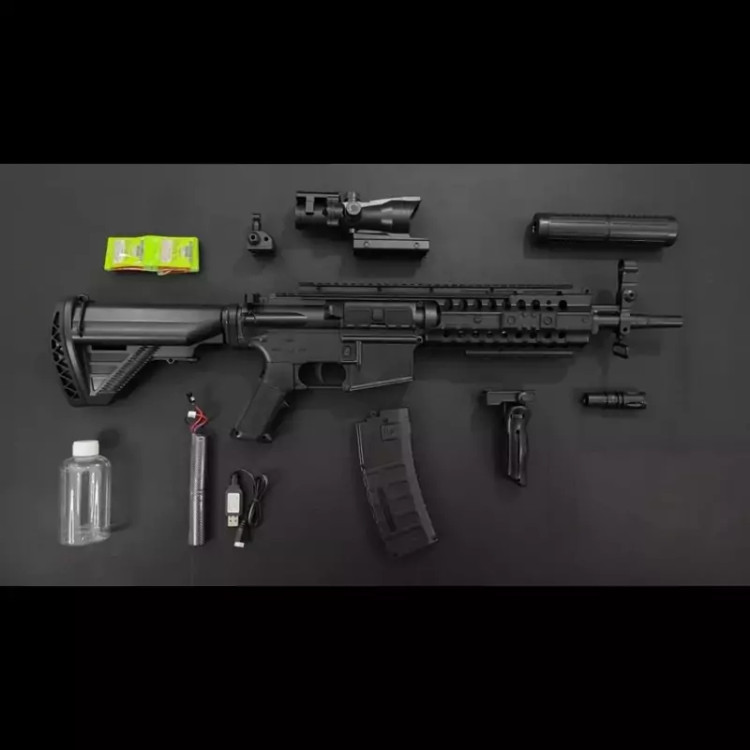 تفنگ تیرژله ای hk416 بلوبک دار HK416 جدا از اینکه قابلیت های فراوانی دارد ، مشابه با نمونه واقعی است و این امر جذابیت آن را دو چندان میکند. برد بالا توانایی دو مود شلیک دارای صدا خفه کن دارای دوربین ساخته شده براساس نمونه واقعی اقلام موجود در بسته بندی مدل HK416: مسلسل HK416 دوربین باتری 7.4 ولت نشانه دسته نگهدارنده صدا خفه کن کابل شارژ تیر ژله ای بطری تیر ژله ای