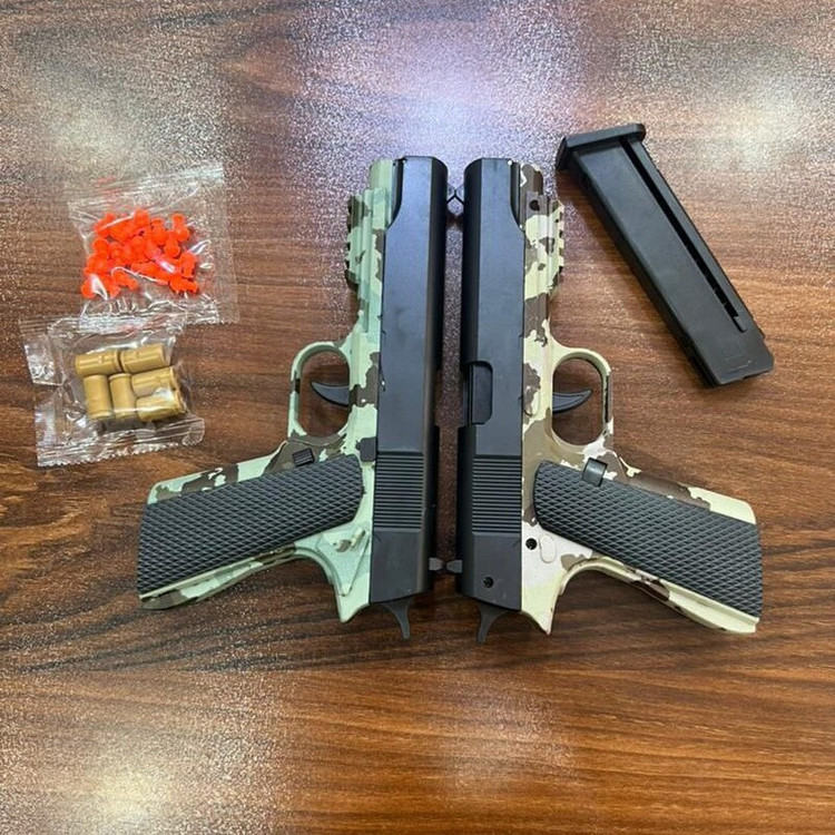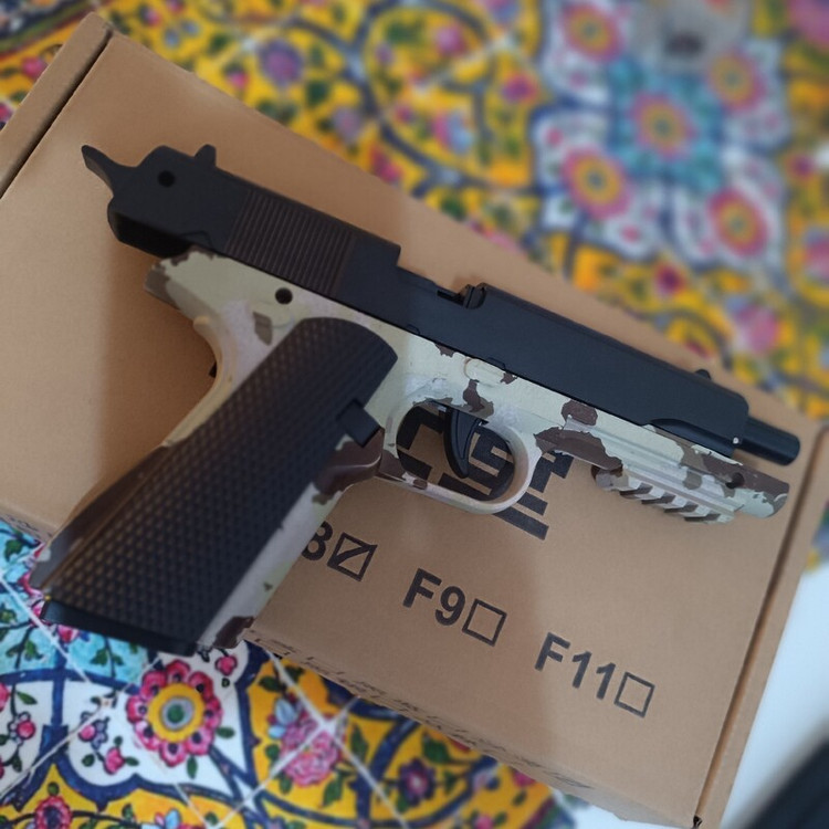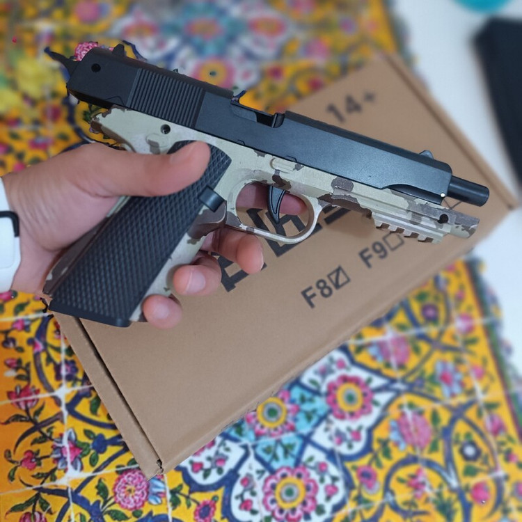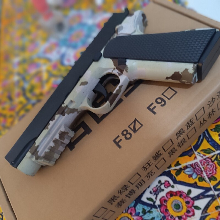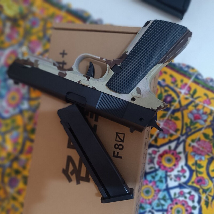 تفنگ اسباب بازی پوکه پران f8 رنگ چریک بدون نیاز به کلیدن گلن گدن مکانیزم نمونه واقعی دارای خشاب برد و قدرت خوب
